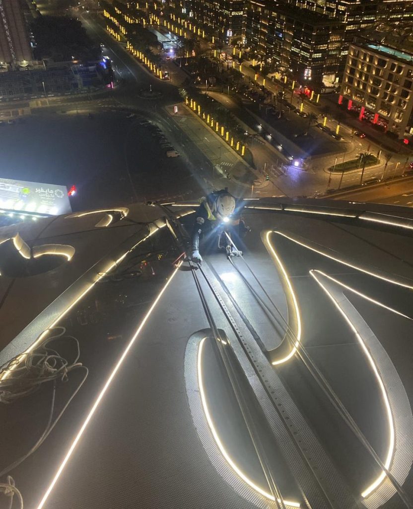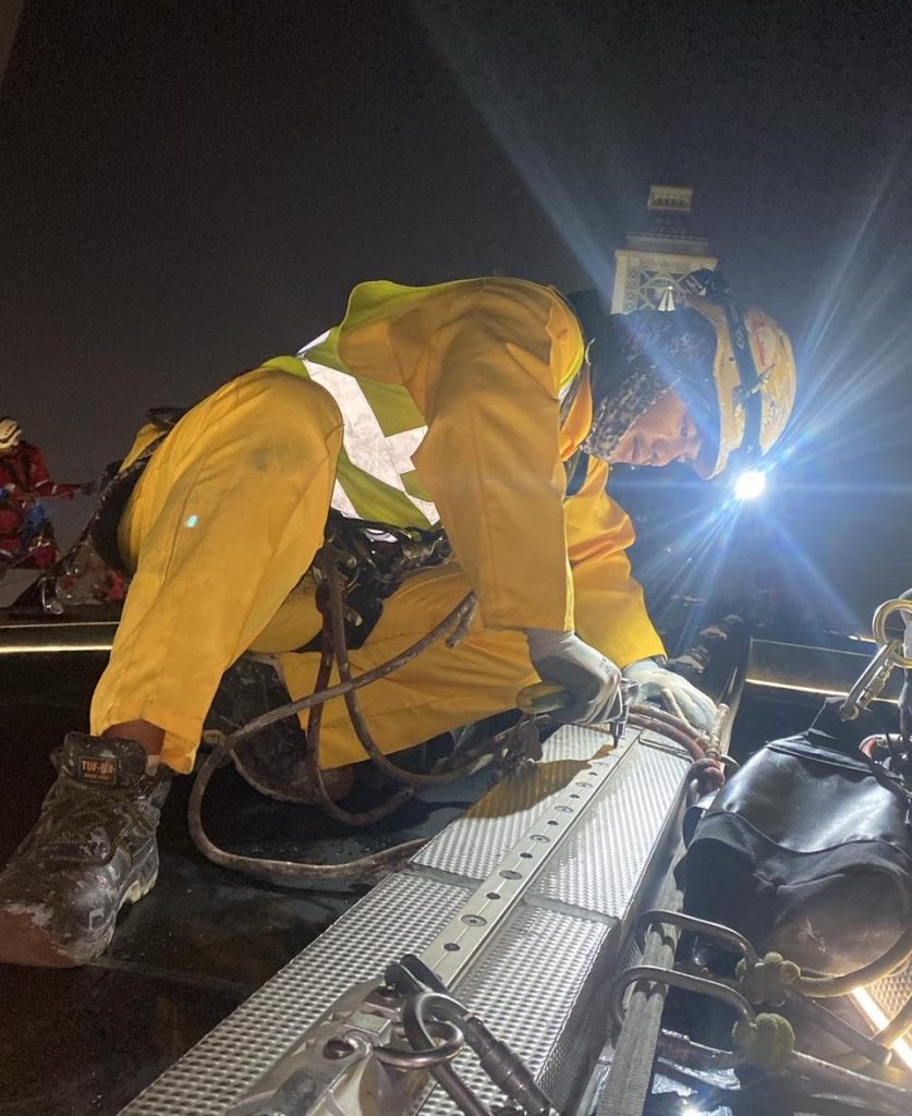 The survey was conducted by the rope access operations team by monitoring the condition of the catwalk and other structural sections, finding areas with damaged firestop protection and other abnormalities.